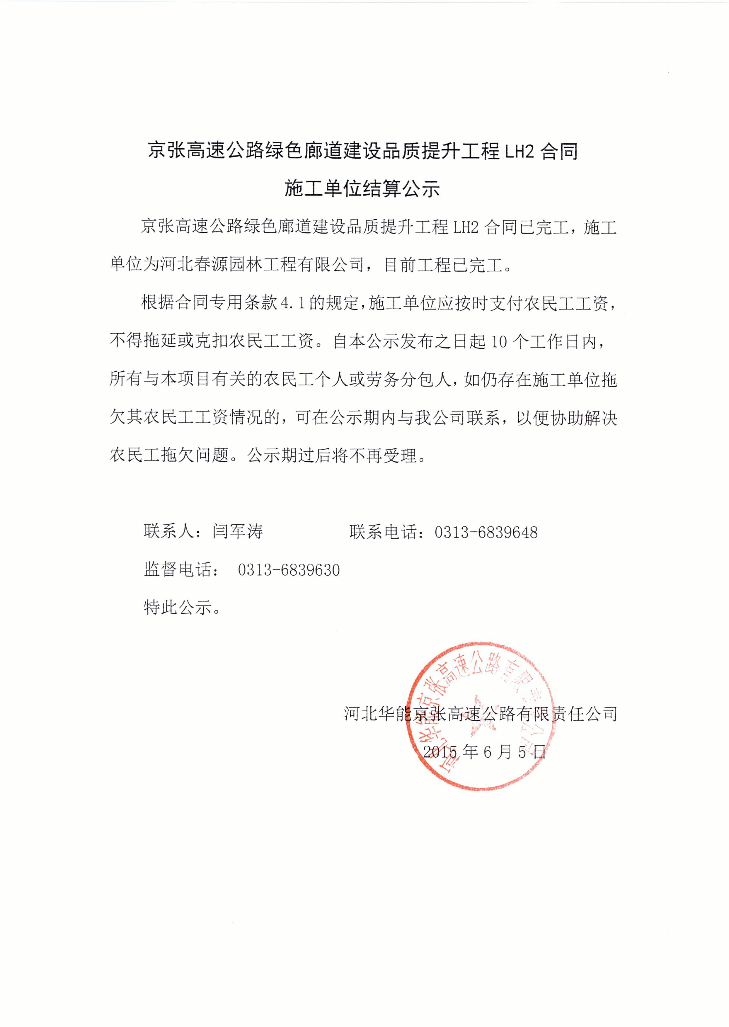 京張高速綠色廊道綠化二標結算公示