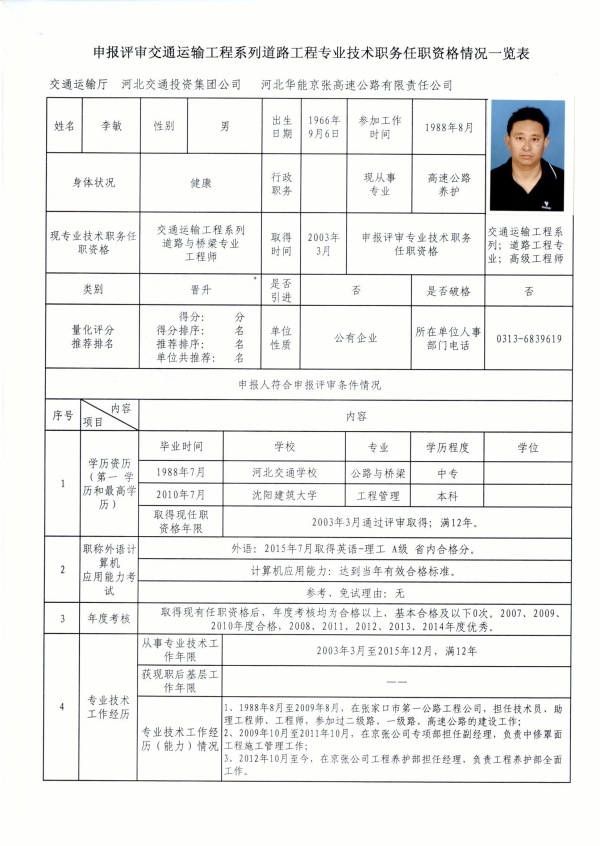 職稱申報公示(李敏)